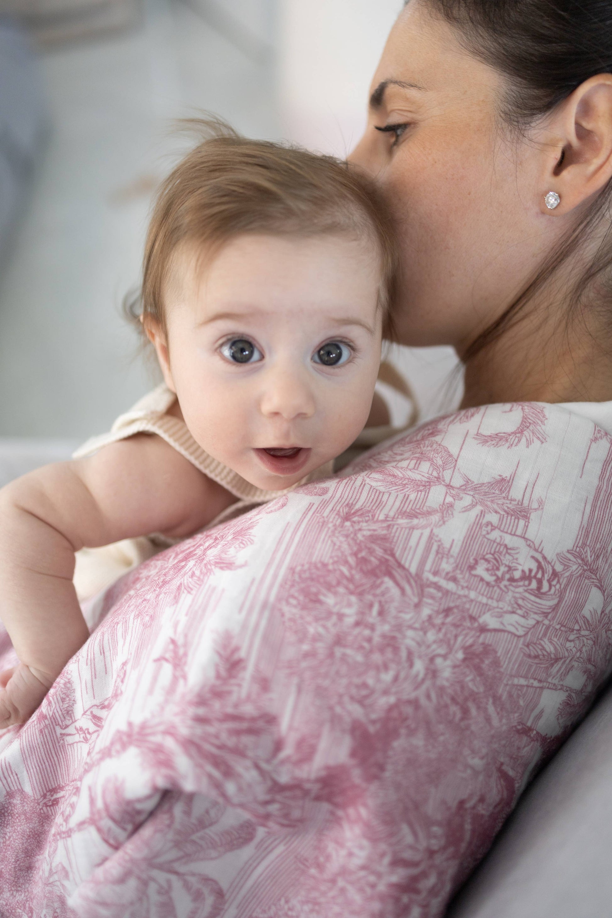 Our baby blanket can be used in a variety of ways, including as a swaddle blanket, burp cloth, nursing cover, change mat, and stroller cover.
